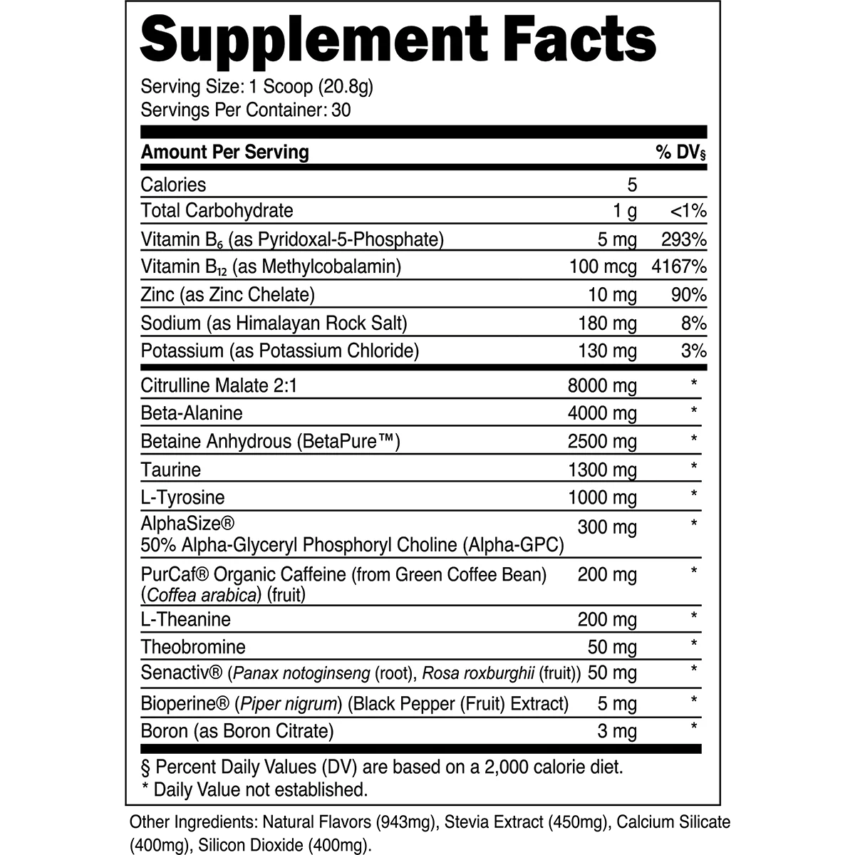 Overall this is a VERY weak formula, the main component in any preworkout, L-Citrulline, is short by about 5g or 80% which makes it severely underdosed
