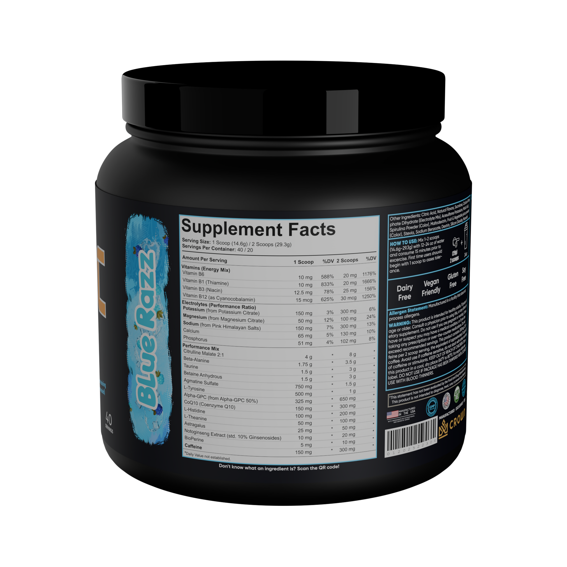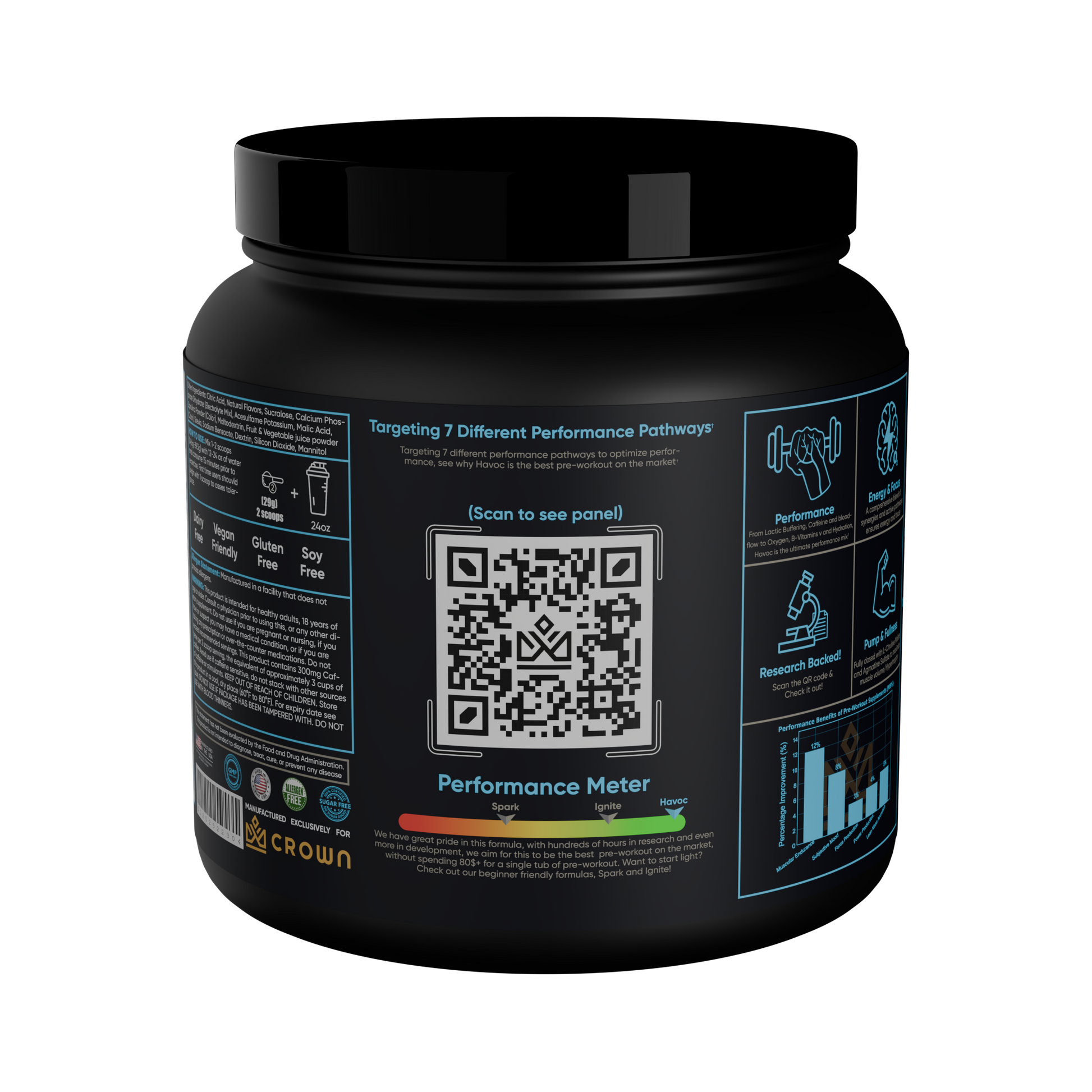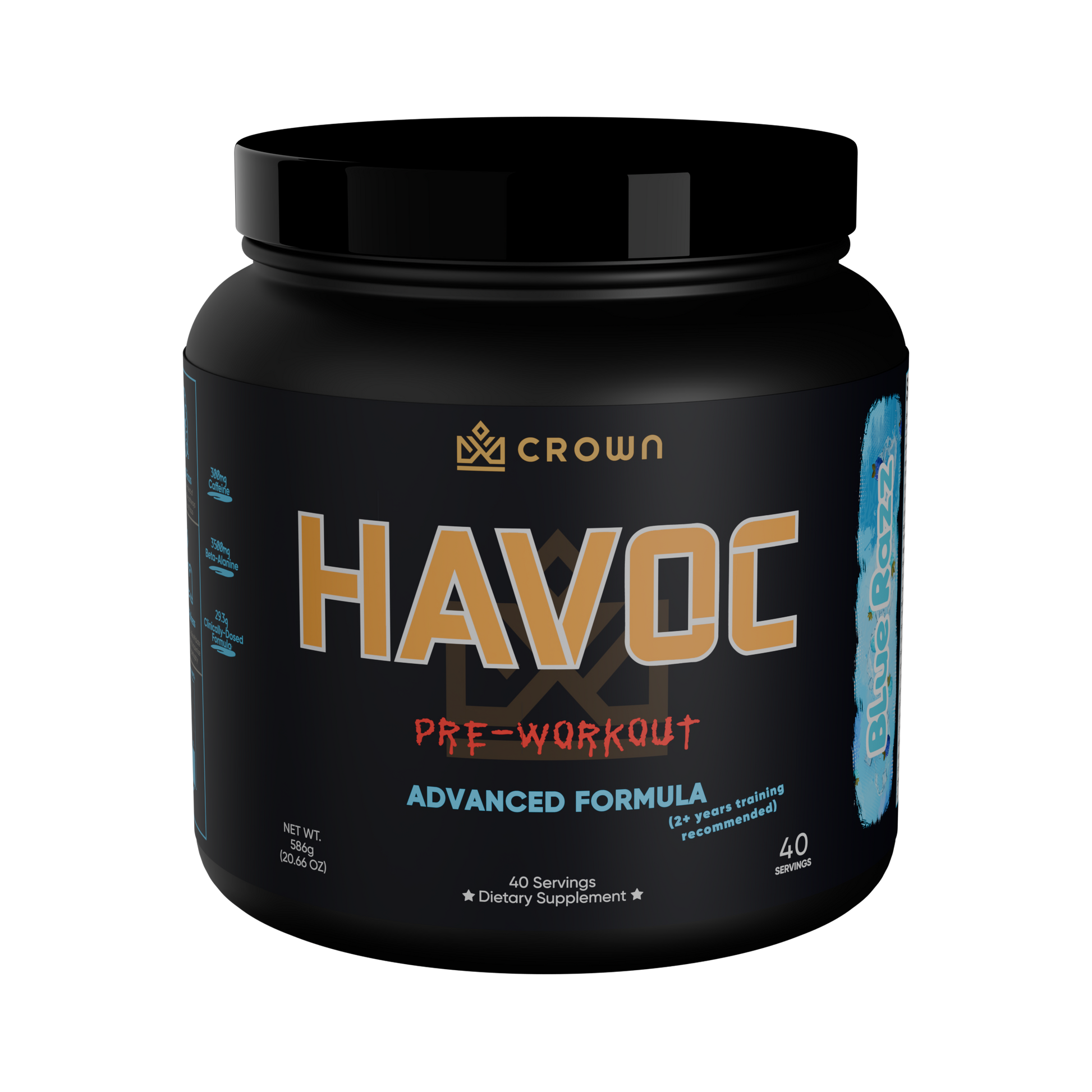 Behind the flavor is a fully loaded and synergistically optimized formula created specifically for intense lifts. Our formula is optimized to boost endurance, blood flow, and stimulate consistent energy, mood, and focus. Whether it’s Chest Day or Leg Day, Havoc Blue Razz will keep you locked in from the first scoop to the last rep.